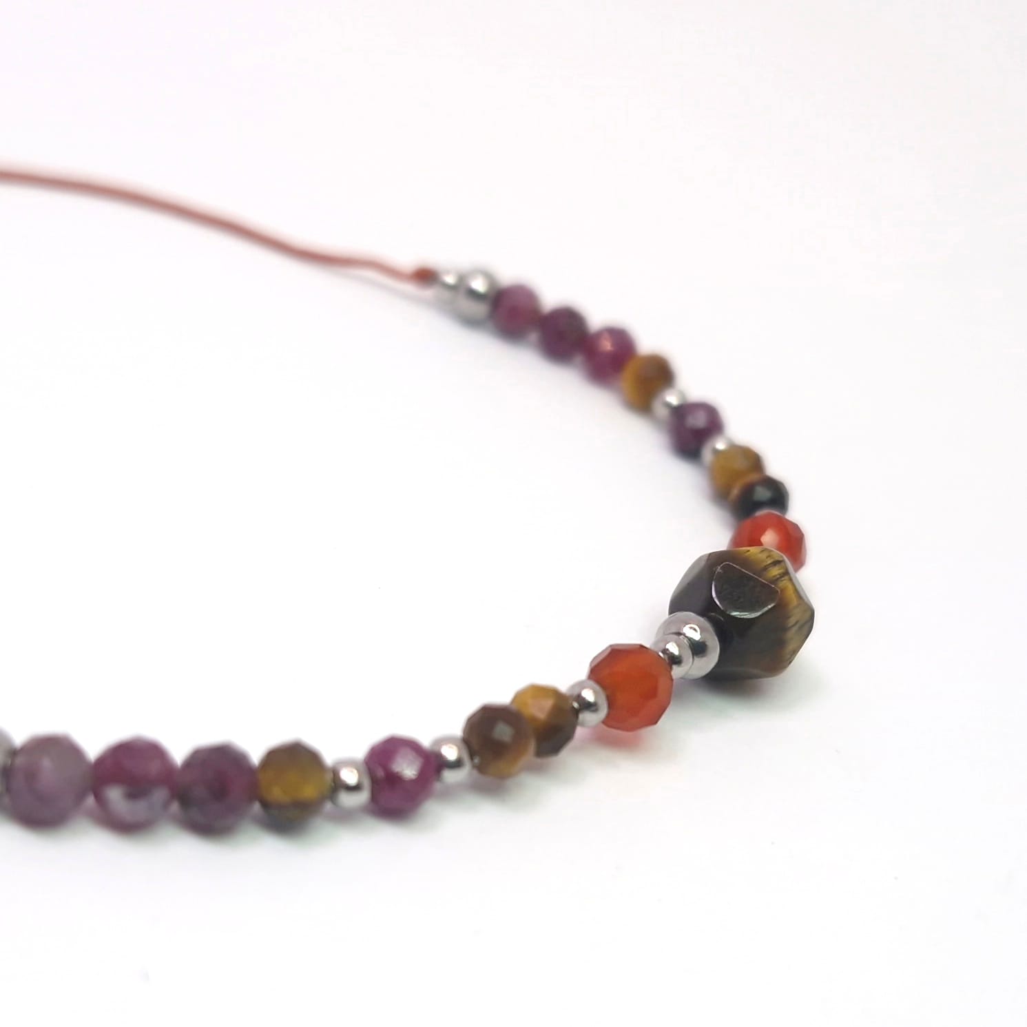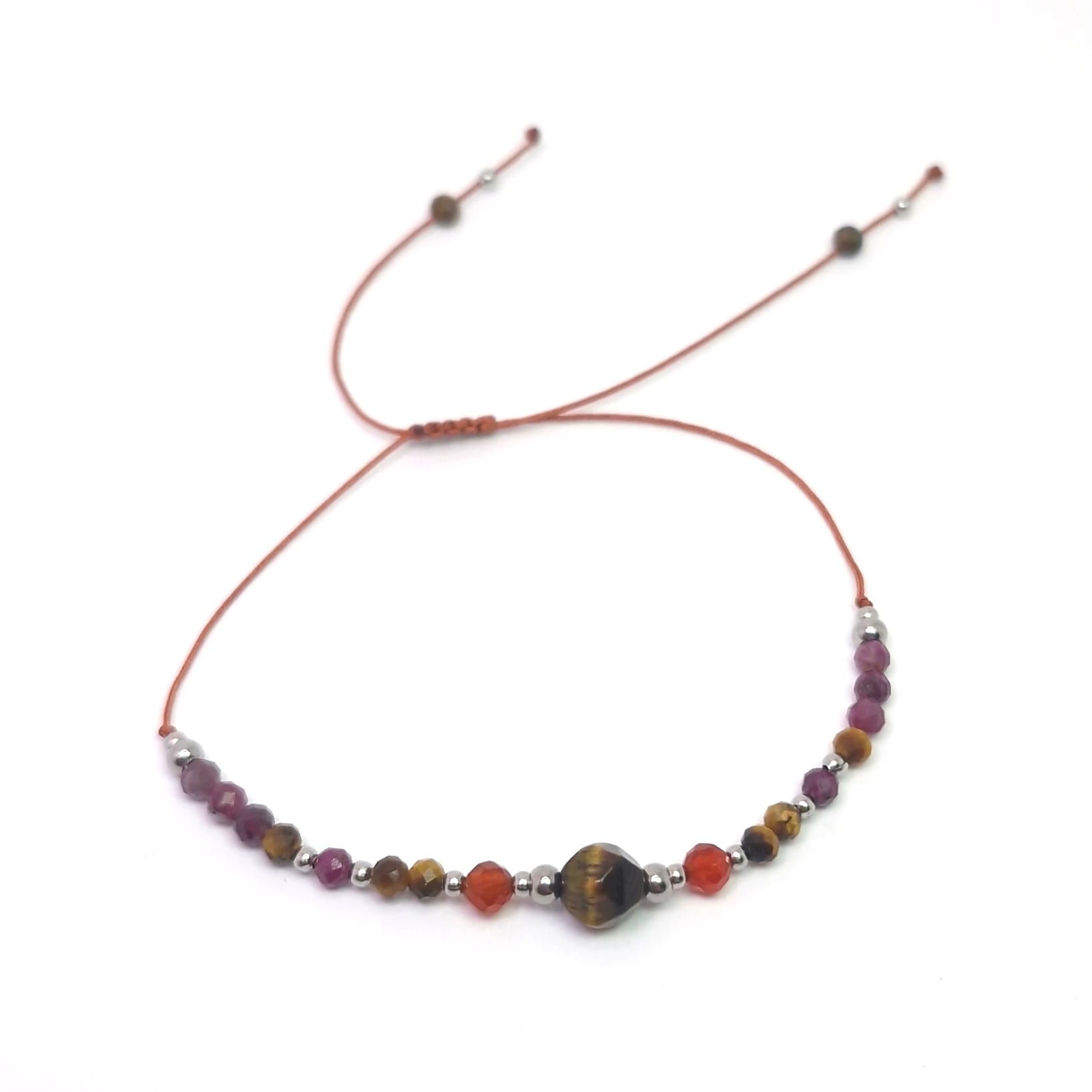 Prezentowany model to wariant srebrny, w którym chłodny blask stali chirurgicznej idealnie kontrastuje z ciepłymi barwami minerałów. Biżuteria jest dostępna również w wersji pozłacanej, co pozwala na idealne dopasowanie talizmanu do Twojego indywidualnego stylu. To biżuteria mocy, która działa jak tarcza ochronna, jednocześnie otwierając serce na nowe możliwości i sukcesy.