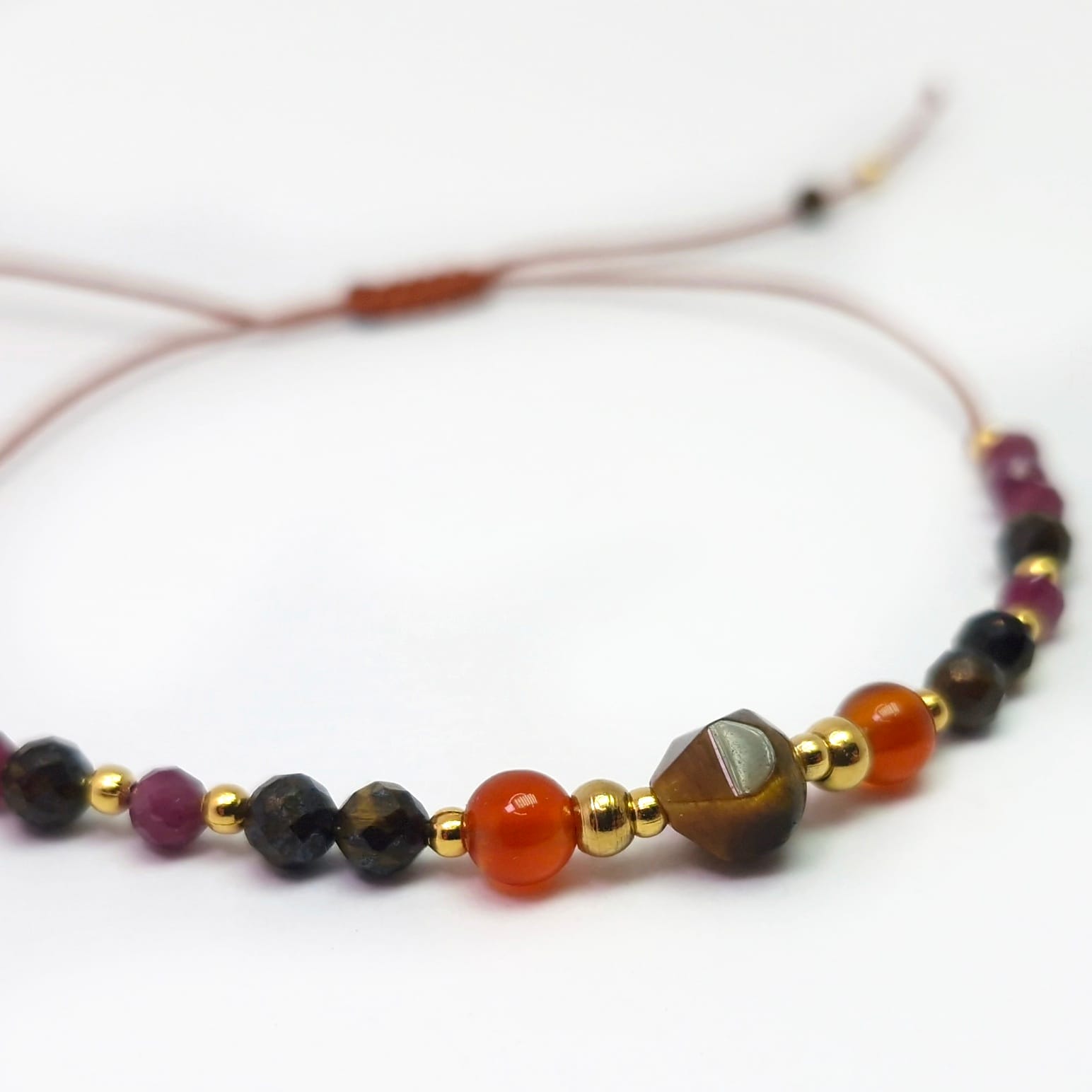 Bransoletka dla Lwa z karneolem i rubinem, wykonana ze stali chirurgicznej w kolorze złotym.Bransoletka Zodiak Lew – Talizman Odwagi i Słonecznego Blasku
