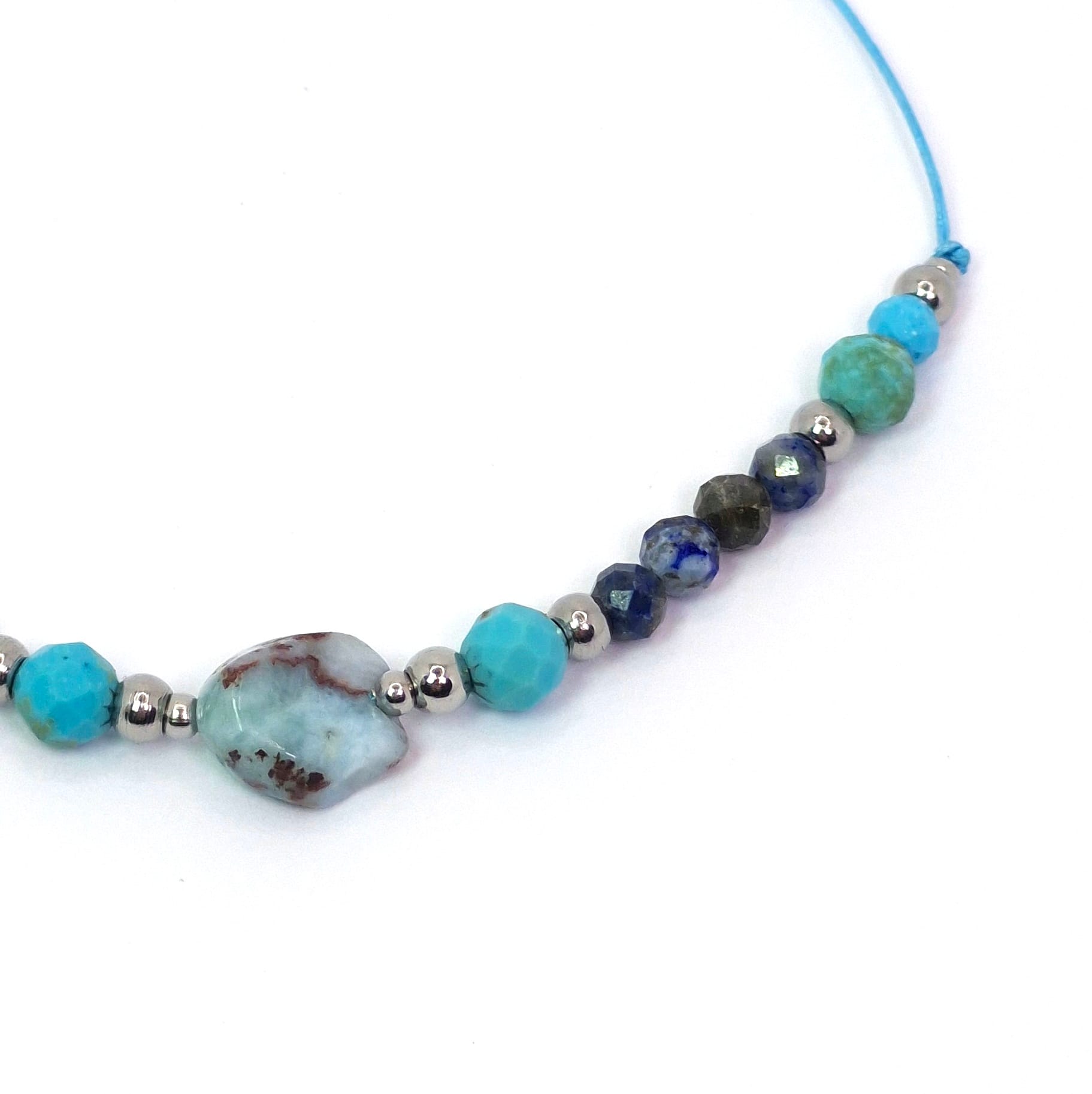 Larimar: Znany jako kamień delfinów, emanuje niezwykle łagodną i kojącą energią oceanu. Larimar wspiera głębokie uzdrawianie emocjonalne, wprowadzając harmonię do serca i umysłu. Jego obecność w talizmanie sprzyja wyciszeniu, pomaga w uwalnianiu się od starych blokad i uczy płynięcia z prądem życia.