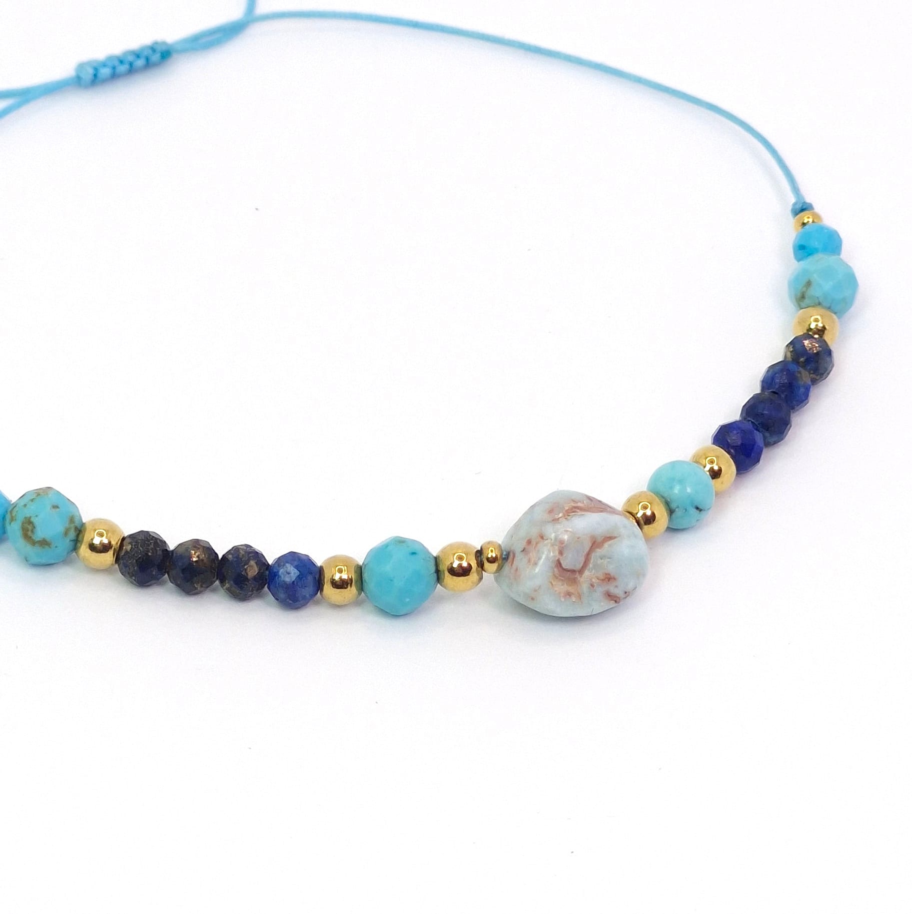 Do oczyszczania energetycznego najlepiej użyć dymu z białej szałwii lub Palo Santo. Larimar oraz Lapis Lazuli chłoną energię z otoczenia, dlatego warto okadzać je po każdym intensywnym dniu. Ładowanie mocy powinno odbywać się w łagodnym świetle Księżyca (najlepiej podczas pełni), co jest szczególnie korzystne dla kamieni o barwach wody. Unikaj wystawiania bransoletki na ostre, południowe słońce, aby chronić Larimar i jego unikalny, błękitny odcień. Dzięki stali chirurgicznej 316L złoconej PVD metal jest bardzo odporny, jednak zalecamy zdejmowanie biżuterii przed kontaktem z silną chemią domową. Niech Twoja wewnętrzna Mądrość prowadzi Cię w rytuałach pielęgnacji tego oceanicznengo talizmanu.