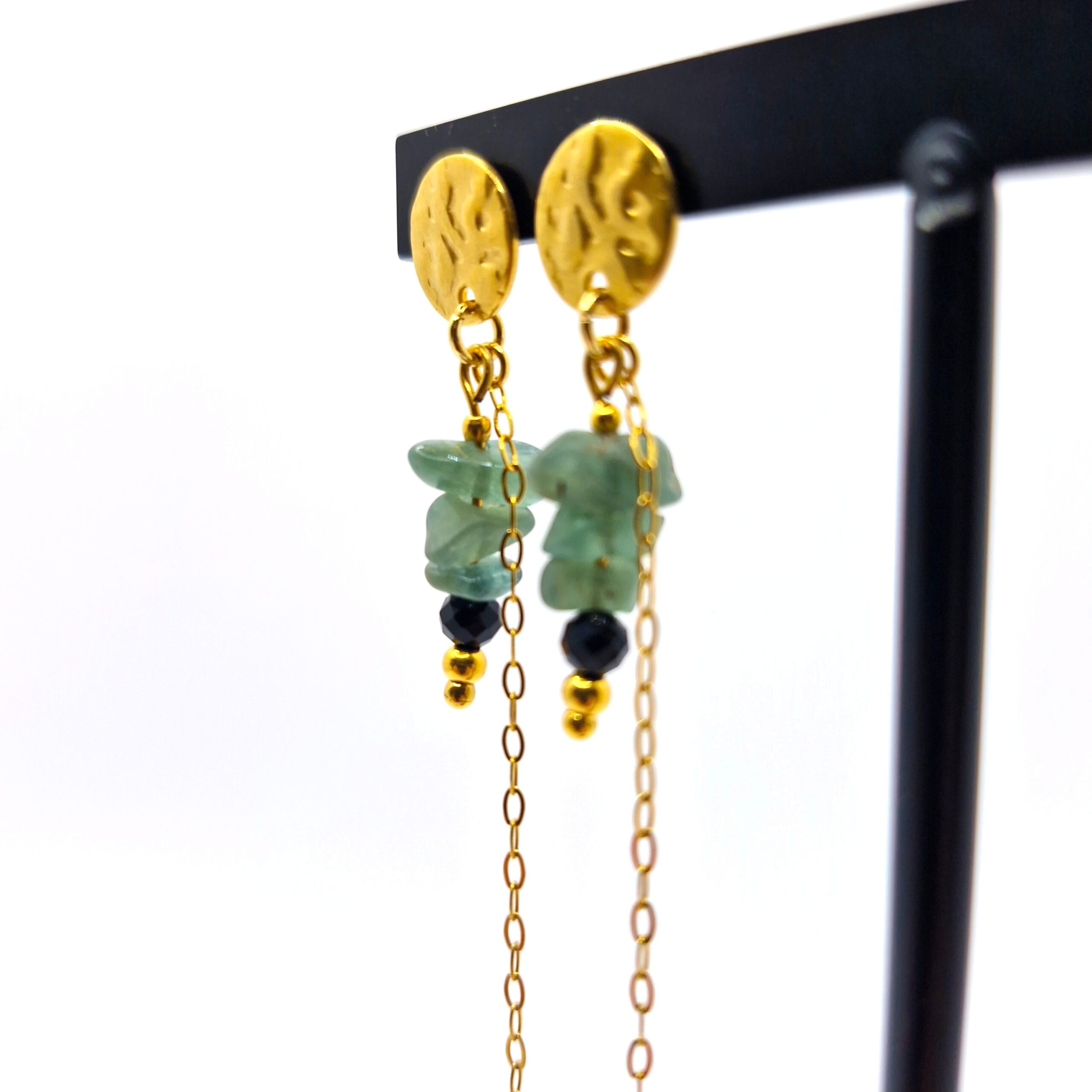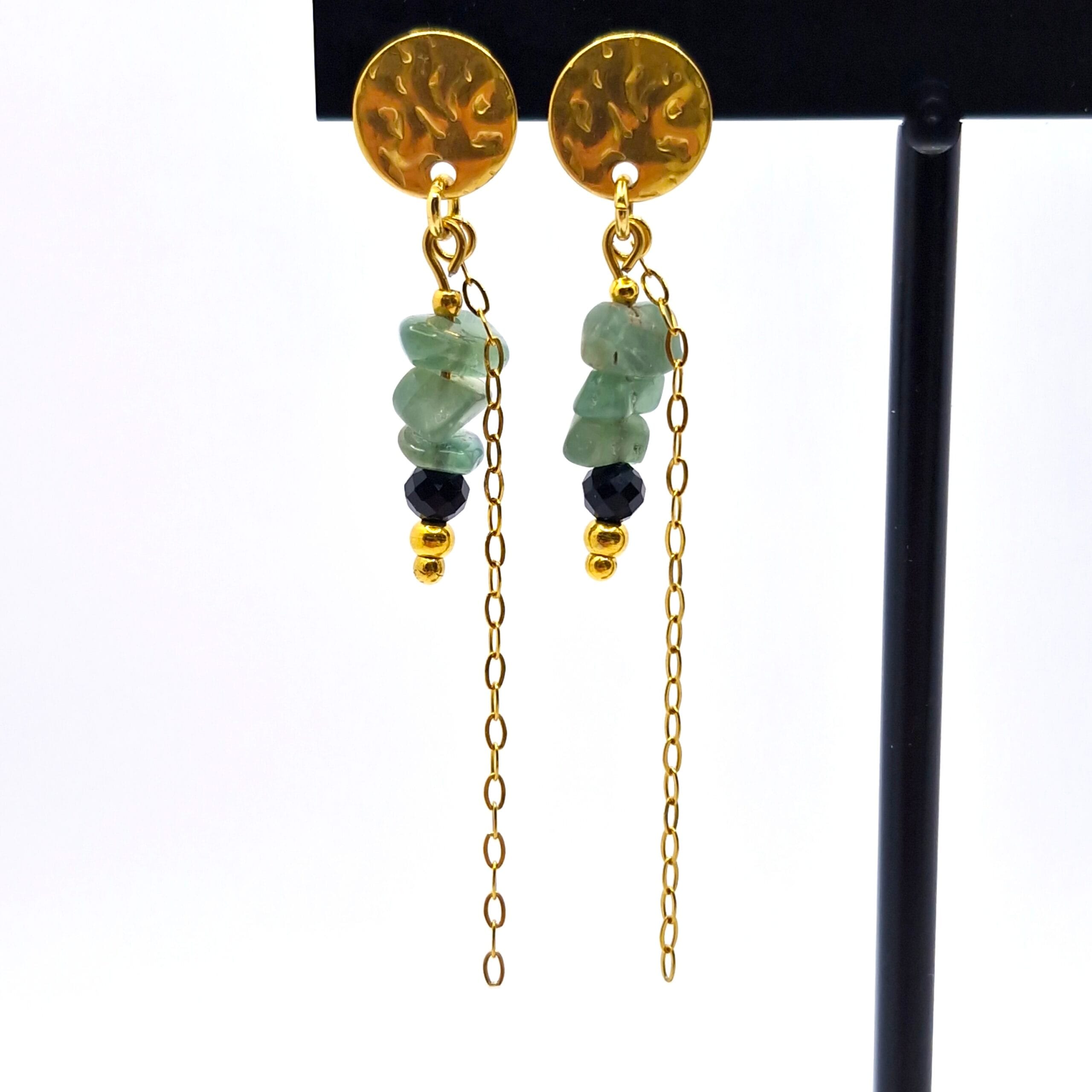 Kolczyki Kwarc Zielony i Czarny Onyks – Szczęście i Ochrona