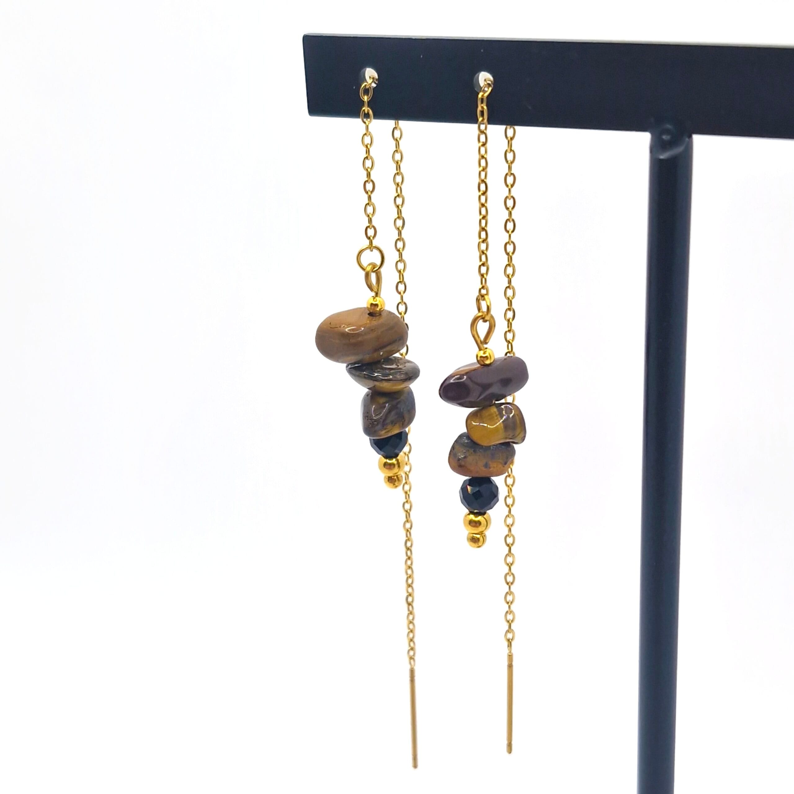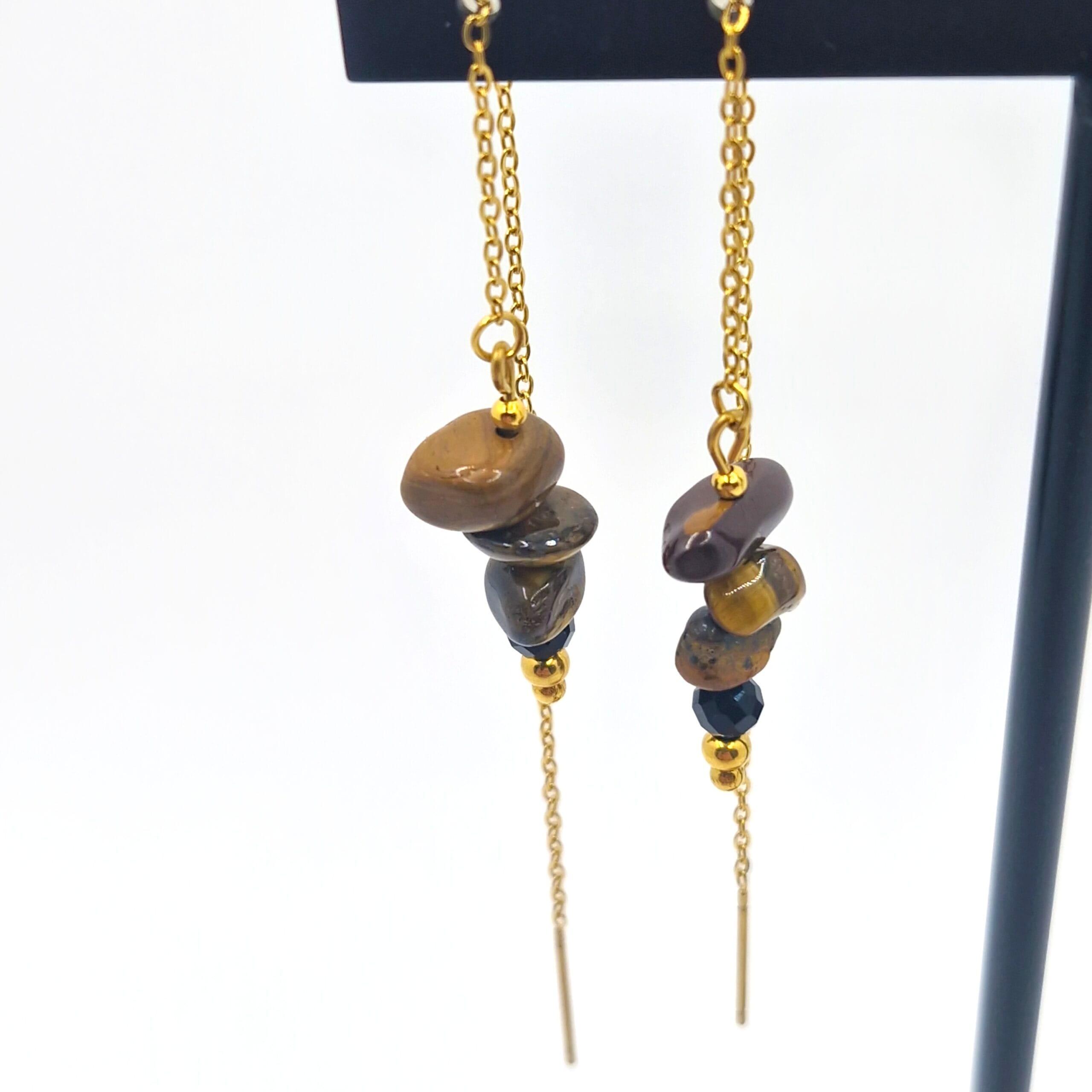 Te unikatowe kolczyki przeciągane to harmonijne połączenie energii słońca i stabilizującej mocy ziemi. Zostały stworzone jako biżuteria pełna wibracji natury, która wspiera Twoją pewność siebie i pomaga zachować spokój w najbardziej wymagających momentach. Projekt opiera się na delikatnych, lecz niezwykle trwałych łańcuszkach, które sprawiają, że minerały subtelnie tańczą przy każdym ruchu, emitując energię sprzyjającą realizacji Twoich marzeń. Ten talizman jest idealnym wyborem dla osób, które pragną kroczyć przez życie z odwagą, czując jednocześnie silne uziemienie i bezpieczeństwo.